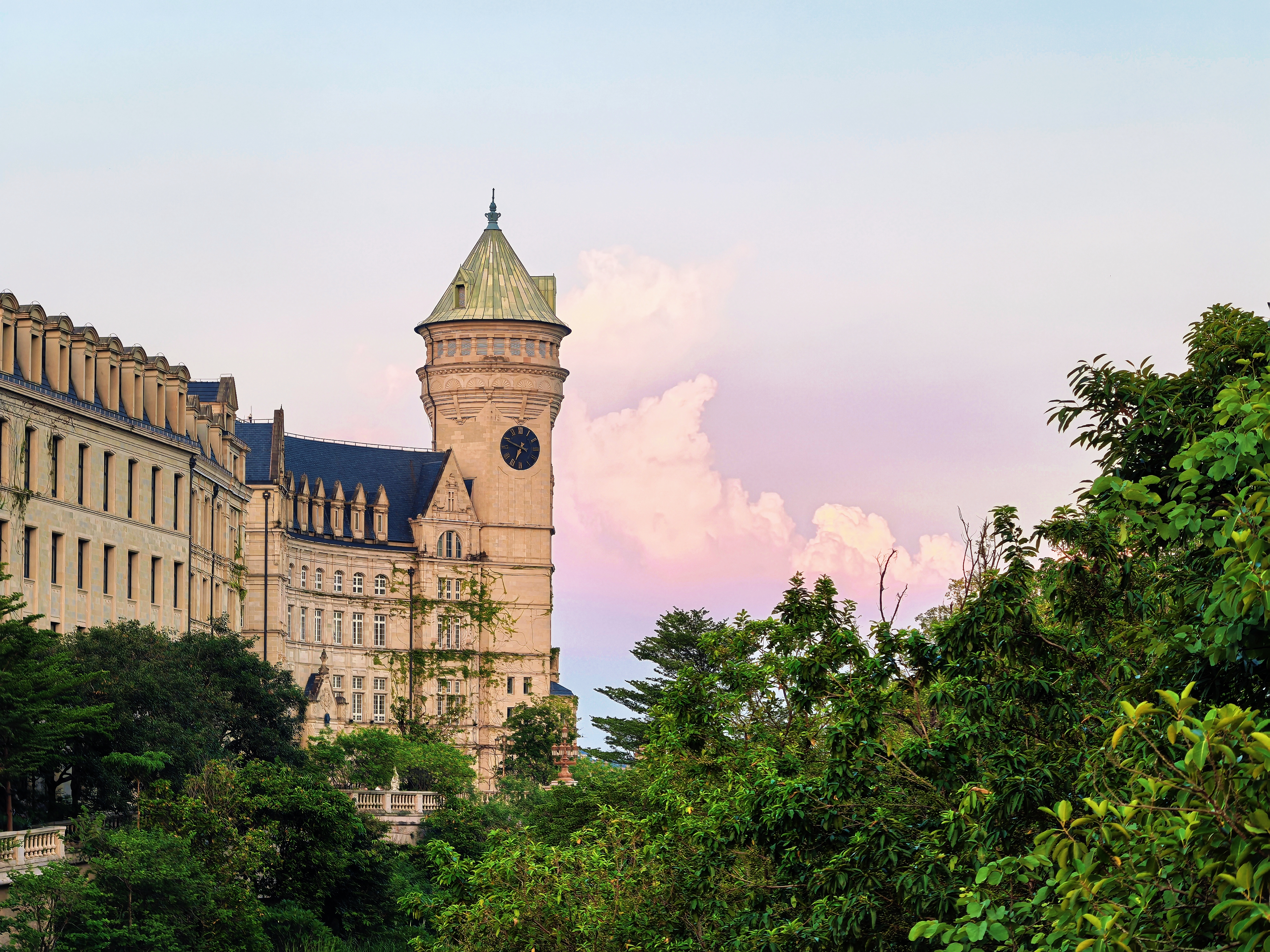 2025 年 8 月,由于工作调动的原因,我来到了广东东莞,在美丽的华为溪村开启了一段崭新的生活。在此期间,我用手机拍下了许多动人的风景——爬满绿藤的欧式建筑、粉红色的落日余晖、湖畔水中生长的密林——这些瞬间让我记忆犹新,永远也无法忘怀。