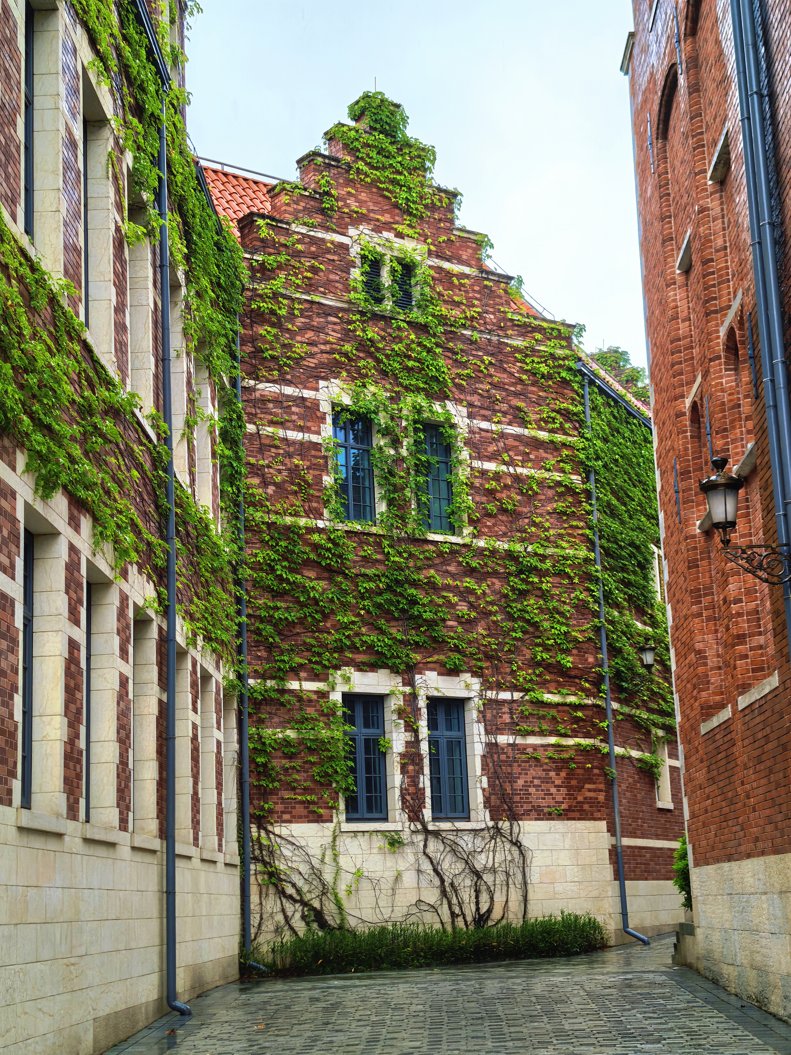 初来东莞时,正值夏末的雨季,淅淅沥沥的雨声时常在耳边响起,雨滴滴落湖面,溅起圈圈涟漪,建筑外墙的藤蔓在暴雨中肆意生长着。