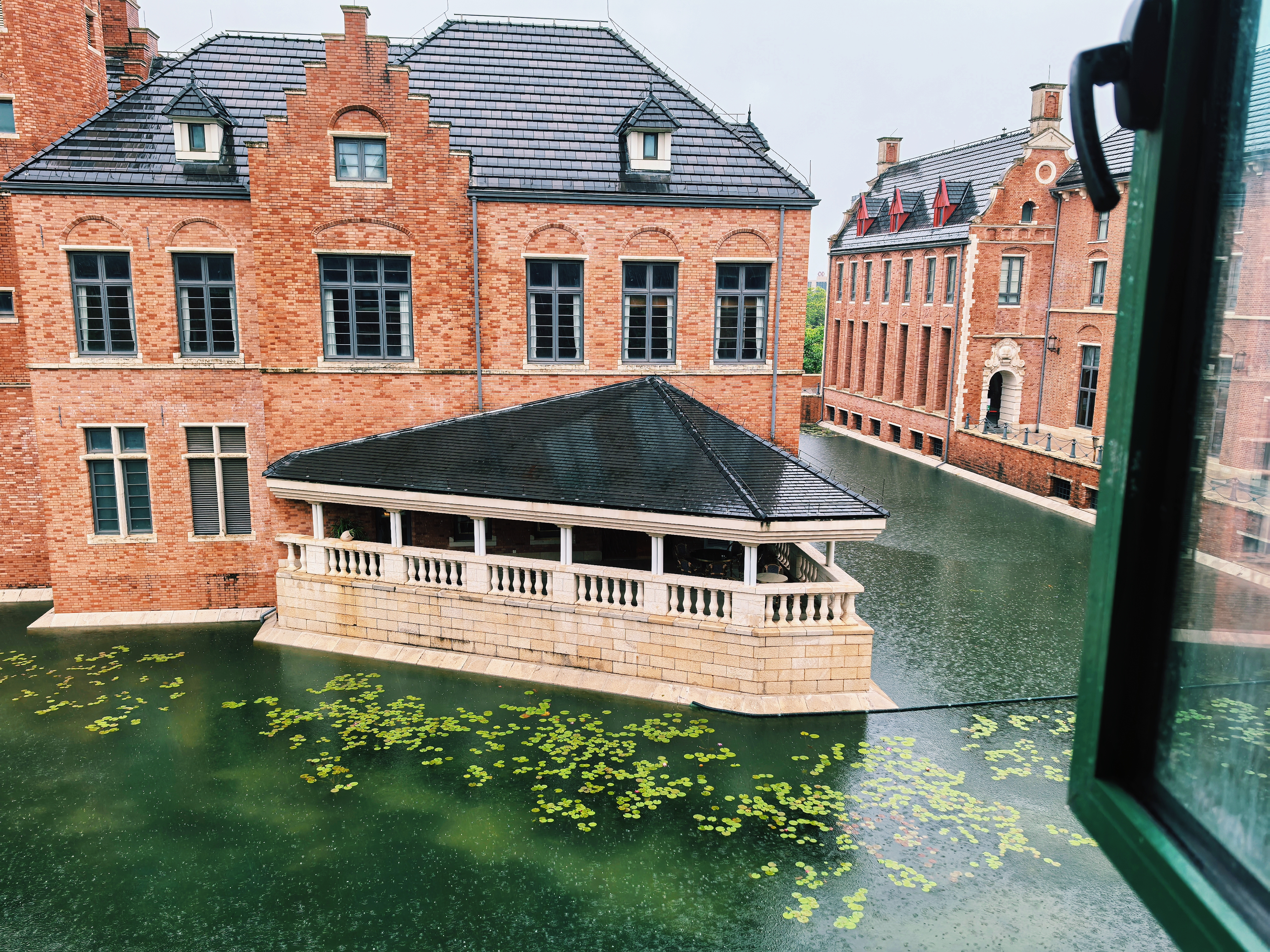 初来东莞时,正值夏末的雨季,淅淅沥沥的雨声时常在耳边响起,雨滴滴落湖面,溅起圈圈涟漪,建筑外墙的藤蔓在暴雨中肆意生长着。